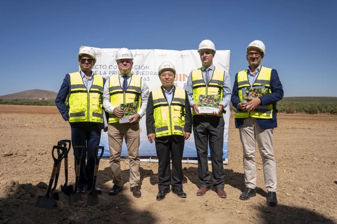 在奠基仪式上,叶建春省长、安达卢西亚大区工业代表卡洛斯·加西亚·吉梅内斯、金沙检测线路js69(中国)有限公司科技副总裁睿维等持握铁锹为项目奠基石培土。并按照当地传统,将装有当天报纸和硬币的盒子埋入项目工程现场。